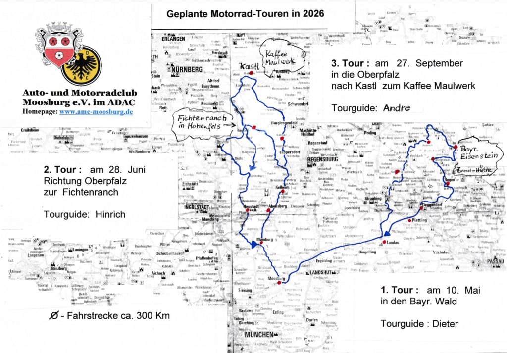 Für den 1. Juni war Einiges an Regen und Gewitter angekündigt. Trotzdem trafen sich 5 passionierte Biker um 09.30 Uhr zur Abfahrt am Moosburger Bahnhof. Ein paar einzelne Tropfen fielen bereits, doch unsere Tour ging nach Südosten, und dort wurde es immer besser. Die Straßen blieben den ganzen Tag trocken, die Motorräder sauber. Dieter Udelhoven hatte eine tolle Strecke über Nebenstraßen, die man nicht so leicht findet, ausgearbeitet. Kurve reihte sich an Kurve. So kamen wir abgekämpft, aber glücklich an unserem Mittagsziel, der Veste Oberhaus in Passau an. Bei zünftigem Mittagsschmaus und ebensolchen Gesprächen sammelten wir neue Kraft für die Rückfahrt. Diese führte uns zum Teil über etwas schnellere Straßen, sodass ausreichend Zeit für eine Kaffepause in Vilsbiburg blieb. Um 17.30 Uhr waren wir nach 315 km bei mittlerweile sonnigem Wetter wieder in Moosburg.